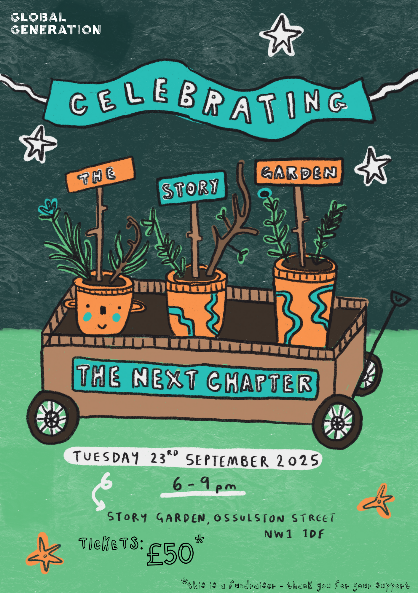 For the past 6 years, Global Generation has been growing food and community from the site on Ossulston Street. The Story Garden was made by a thousand hands, involving school children, young people, residents and employees in the build and planting. Now that it is time to move on to our permanent garden space on York Street, we want to celebrate the incredible things we have achieved together while looking forward to the next phase of growing, carpentry, cooking, eating and connecting.