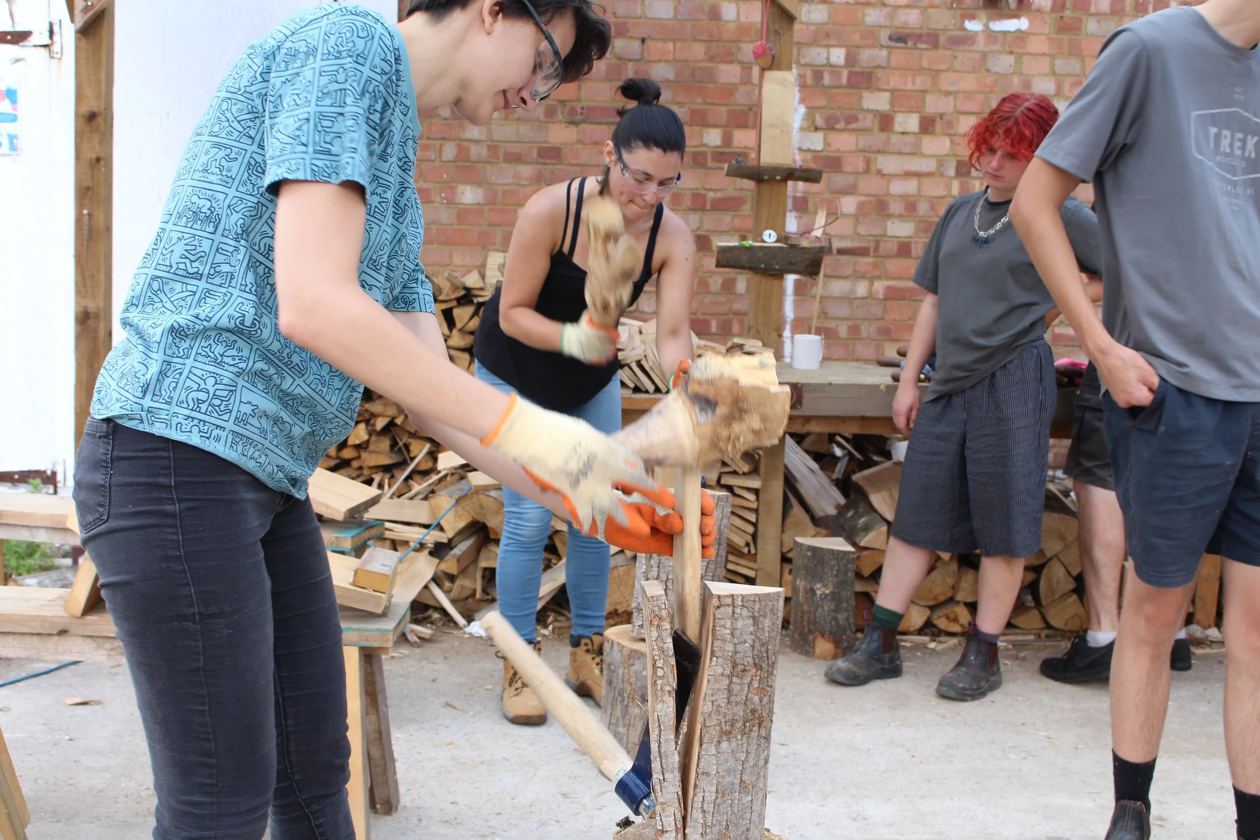 We have started our young trainee programme where young people are given paid training in heritage crafts and skills and the use of local natural materials, showcasing a different way of building in the face of the industrialisation of construction. The first cohort completed their cycle in 2024, having training on building cob walls provided by EBUKI and other incredible excursions to partners like H G Matthews. We have now recruited a new cohort of young trainees who are learning about timber framing, green woodworking and more.
