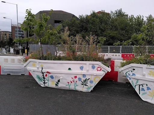In addition to this, during my work experience placement we maintained the skip planters. The skips have been reused as giant plant pots, providing space for more plants in the community. On the visit to the skips we took lots of water to water these plants. Honestly it just shows how much hard work and effort the people at the Paper Gardens put into maintaining and looking after the environment - beyond just inside the Paper Garden. We also went to the Dock Office, where people at the Paper Garden had planted plants. There are a lot medicinal plants here and edible plants, all open to the community. I actually tried some of the berries here - they were really nice and I had interestingly never tried them before, but now i definitely want more. Personally I believe it's really amazing Global Generation puts so much into the community and opens people up to new tastes. These planters have been commissions by local developer British Land, which enables the involvement of the local community in the planting plan of the public realm. Watering these plants was really hard work as we had to use a wheelbarrow to get the water all the way to Canada Water station, but it was a great experience.
