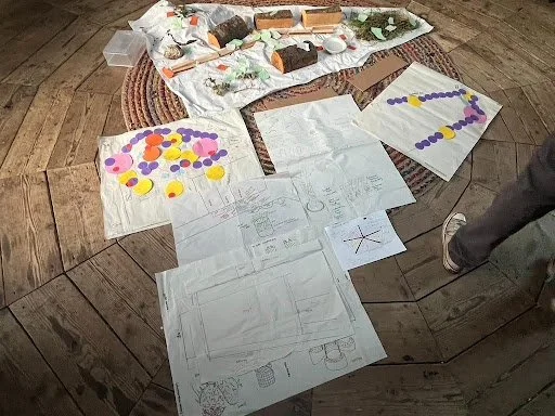 Planning for real was a really great tool for starting to think about how these different areas and systems would work together on site to carry out our goals for this project. This consisted of us collecting random items, scraps of paper and mapping them out to start to understand the site itself, and what functions different spaces would encompass. This allowed us to then split off and focus on more specific areas on site, knowing that it would align to the rest of our plan.