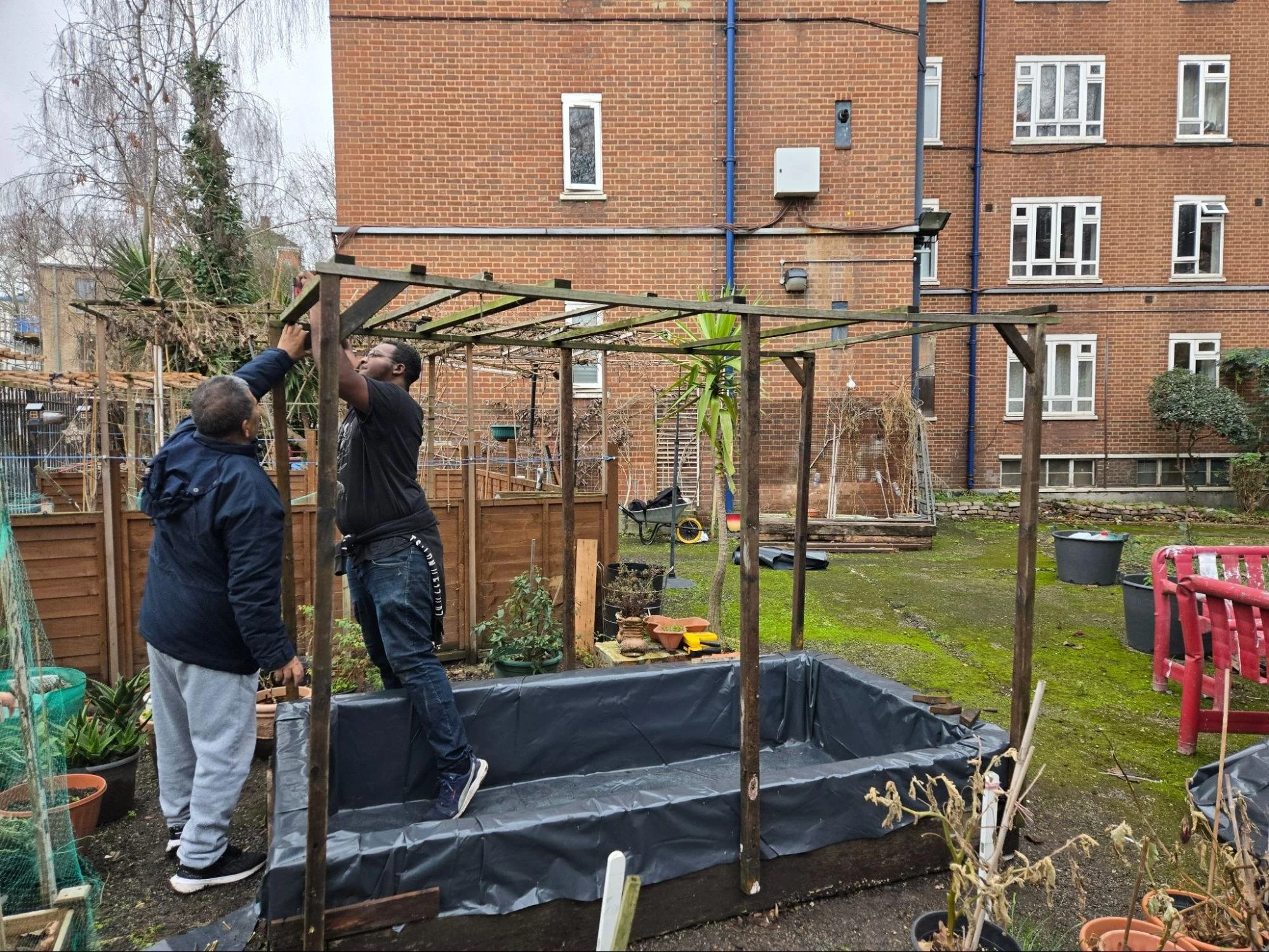 Inspired by our experiences at the Story Garden, we wanted to explore the possibility of creating a similar space on our estate. We reached out to our housing authorities to request access to the locked green space on our Godwin and Crowndale estate. Progress has taken time, but we’re making it happen on a smaller scale.