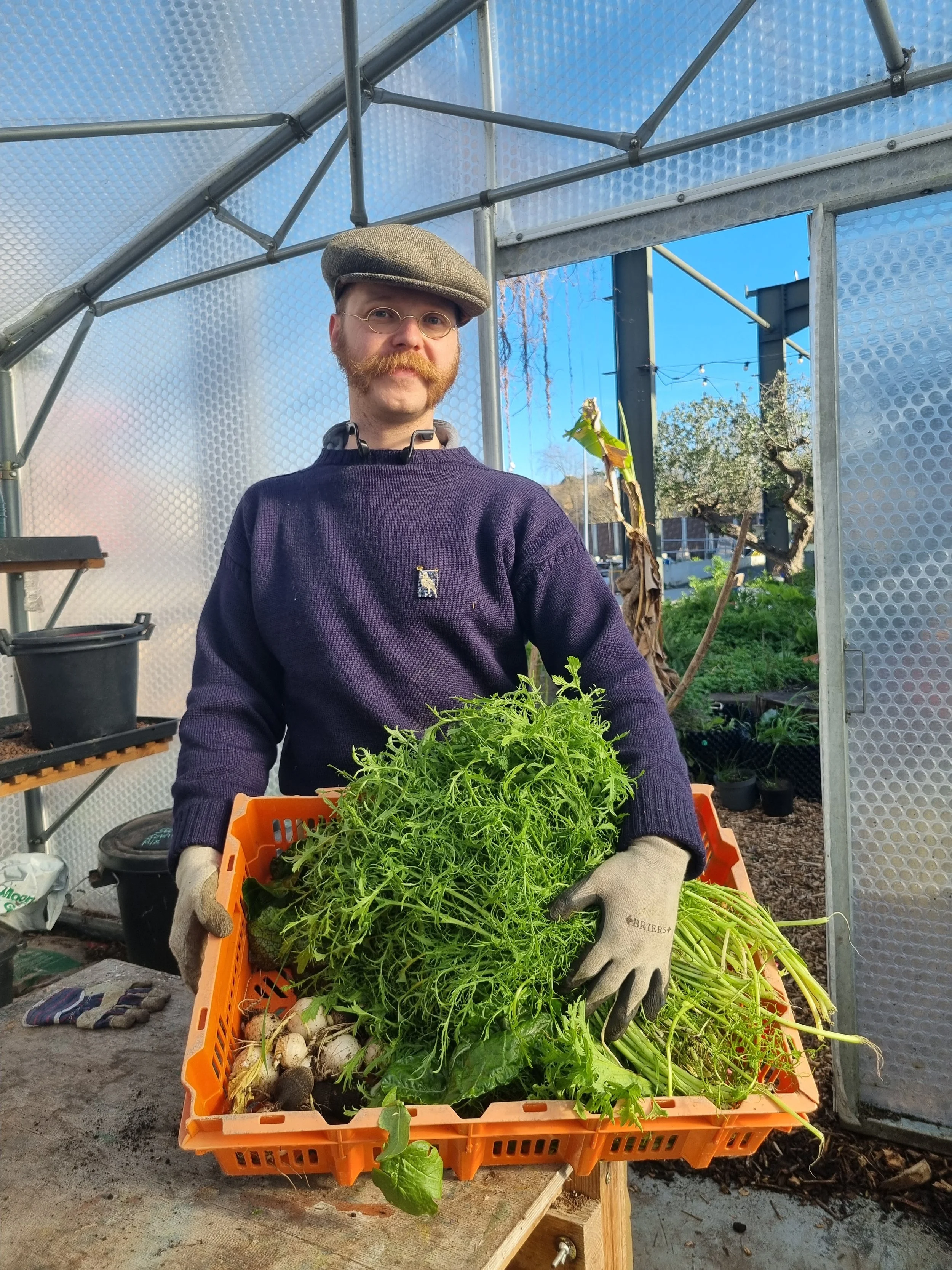The core of our practice is deep learning. We sit in the winter and have big discussions. What should the theme be? Why are we learning about this? What relevance does it have to the lives of the people attending our programme? In the middle of this spreadsheeting and mind-mapping, we divide dahlia tubers, and learn how to store vegetables. The salads, the mustard frills, get picked, slowly growing as they stay relatively warm in the polytunnel. The other day, we sowed 60 sweet peas. Perhaps too many. January can be long, but there is always something to occupy yourself with. All the while we craft a story that can frame our year in the garden, give us something to work towards. When you work with two different classes a week, 60 children that visit once a year, then you need a solid framework, one that calls back to the previous year; you must imagine the way that the children are only here once, then back again, and they bring all their memories fresher than yours to the space. For them, their time in the garden is similar to the plants, similar to the perennials. They exist in deep time and so must we, crossing over the years and condensing them, making them into a coherent and familiar space, no matter how much we change too. We cover topics again and again, show them the same plants, how to interact with them. The plants become old friends, route-markers; sage, rosemary, mustard frills, nasturtiums.