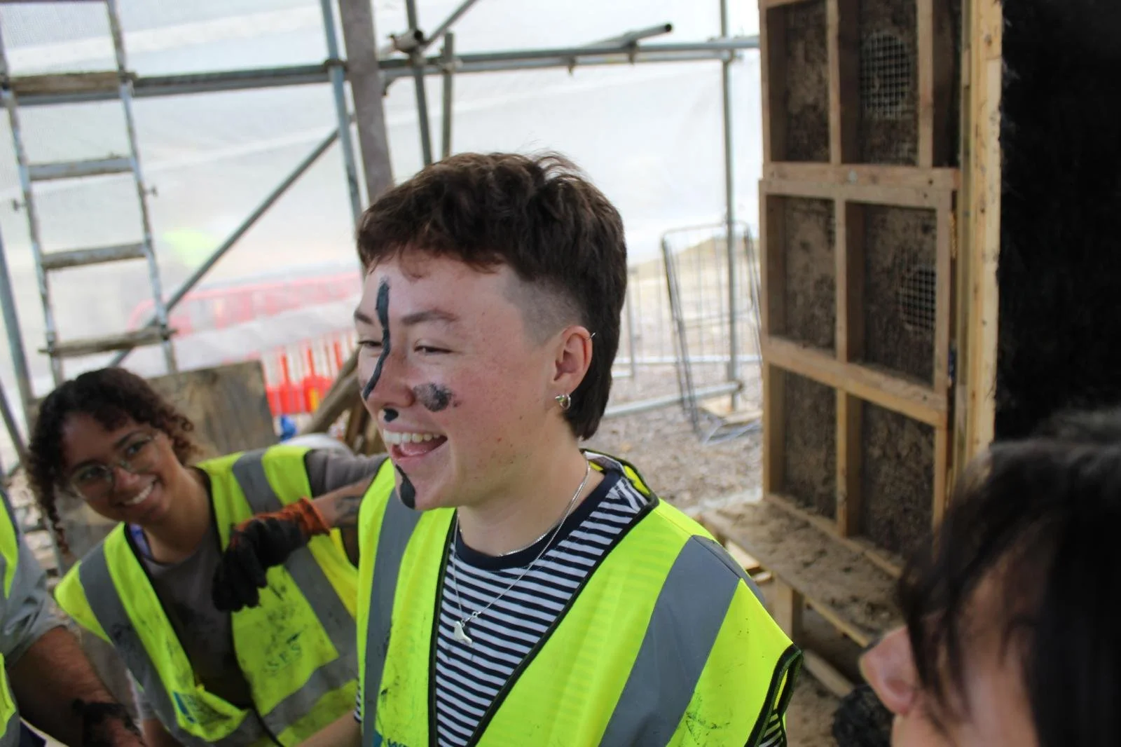 Since this is our first time running this format of educational programme alongside our build, we wanted to understand how it worked differently. We are working with the team from Tranquil City to evaluate the impact of the traineeship programme on the young trainees themselves. This evaluation process uses a mix of survey and interviews to understand their own feelings about their wellbeing, community and nature connection, their environmental attitudes and behaviours and their skills and knowledge development alongside their overall experiences of the programme. It follows all four cohorts from beginning to end, but some early insights from the first two cohorts have been positive. The results show that confidence after the programme is significantly boosted, more than double across both cohorts.